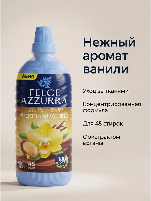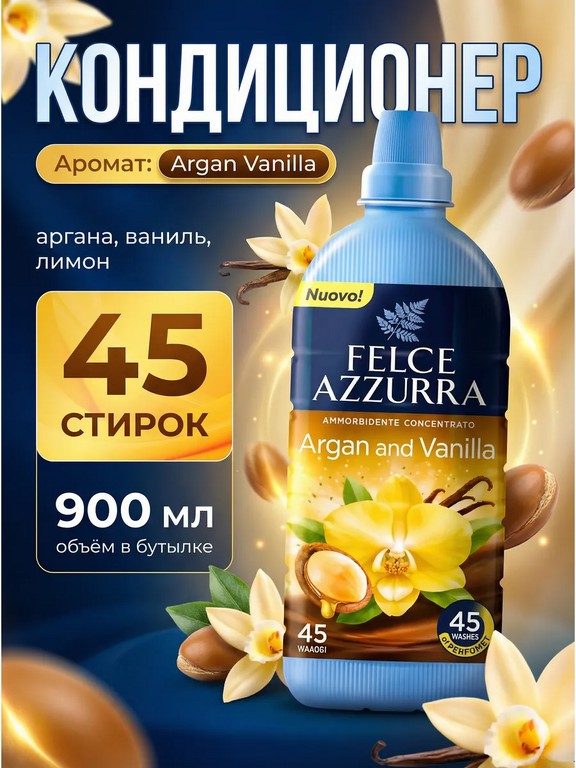 - - Комплектация: Кондиционер концентрированный для белья Felce Azzurra Argan Vaniglia 900 мл (аргана, ваниль)