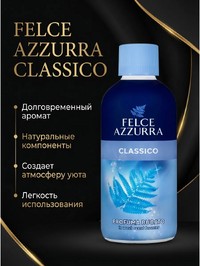 Новый уровень ухода с кондиционерами-бустерами для белья Felce Azzurra! Теперь ароматная композиция стала еще ярче, а обновленная формула еще более концентрированной, обеспечивая максимальную эффективность и экономичность. Парфюм для белья бустер для стирки Felce Azzurra Classico – это концентрированная отдушка, придающая вашим вещам неповторимый свежий аромат после стирки. Насладитесь чистотой и стойким бодрящим шлейфом с узнаваемыми нотами итальянского папоротника, цитрусов и альпийских трав, который сохраняется на белье и одежде долгое время.
