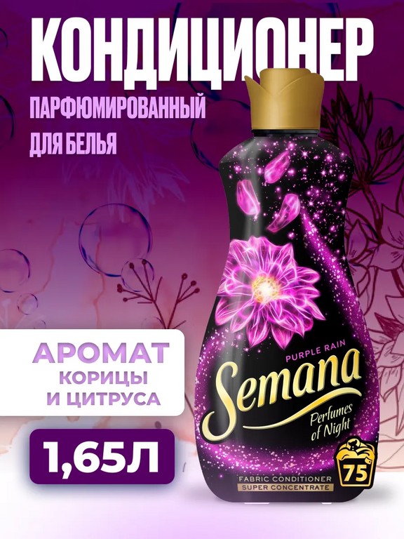 - - Комплектация: Кондиционер для белья Semana Perfumes of Night Purple Rain 1.65 л (корица, цитрус)