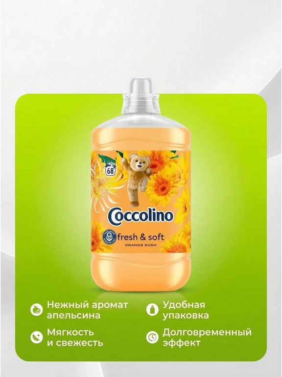 Подарите своему белью нежный аромат и непревзойденную мягкость с Coccolino Кондиционер Orange Rush! Этот концентрат, объемом 1,7 литра, обеспечит вам 68 стирок, наполняя ваш дом свежим ароматом грейпфрута, абрикоса и малины. Coccolino Orange Rush — это не просто кондиционер, это забота о вашем белье и о вашей семье. Бесхлорная формула бережно ухаживает за тканью, восстанавливая ее яркость и предотвращая выцветание. Ваше белье станет невероятно мягким и приятным на ощупь, а антистатический эффект избавит вас от неприятных прилипаний. Coccolino Orange Rush — это идеальный выбор для всей семьи, в том числе и для нежной кожи малышей. Почувствуйте разницу, почувствуйте Coccolino! Представьте, как свежесть и аромат цитрусовых окутывают вас после стирки, наполняя ваш дом атмосферой чистоты и уюта.