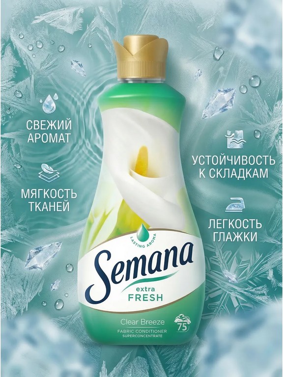 - - Комплектация: Кондиционер для белья Semana Extra Fresh Clear Breeze 1.5 л (яблоко, полевые цветы)
