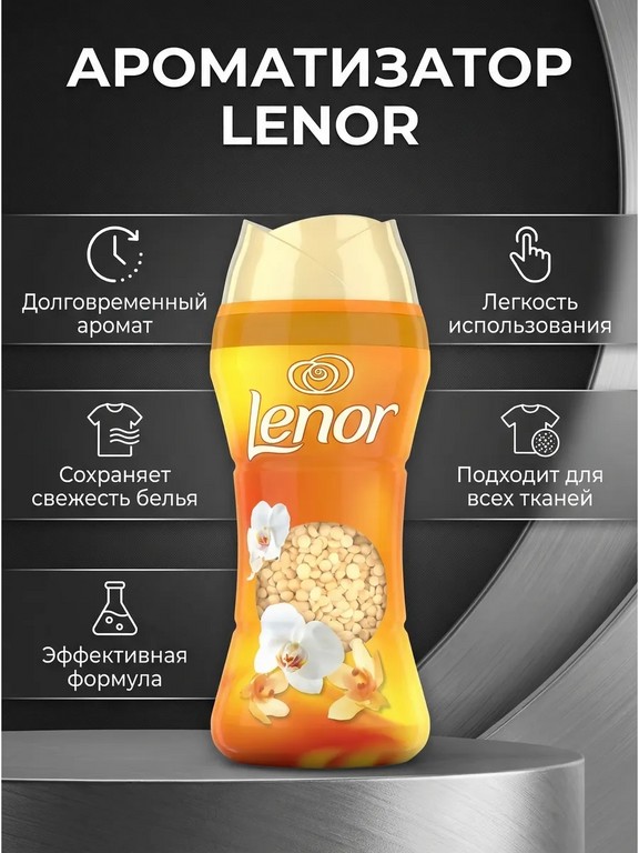 - - Комплектация: Парфюм для белья в гранулах Lenor Gold Orchid 270 г (орхидея, мед, роза)