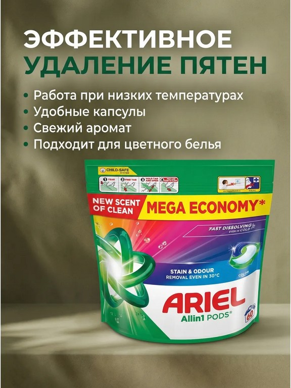 - - Комплектация: Капсулы для стирки Ariel All in One Color 60 шт.