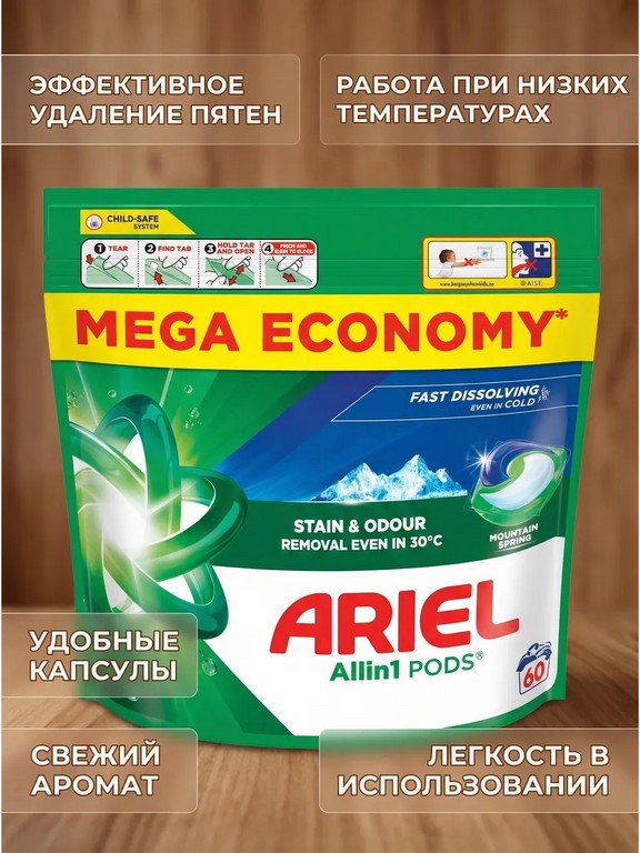 - - Комплектация: Капсулы для стирки Ariel All in One универсальные 60 шт.