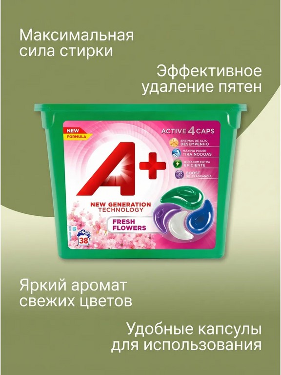 - - Комплектация: Капсулы для стирки с кондиционером А+ 4 в 1 универсальные 38 шт (цветочный аромат)