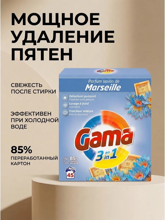 - - Комплектация: Стиральный порошок автомат универсальный Gama 2,475 кг (марсель, лотос)