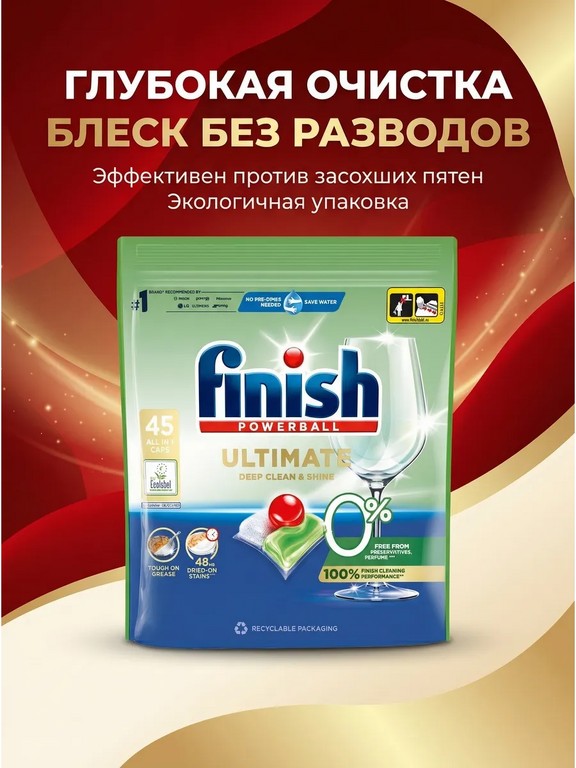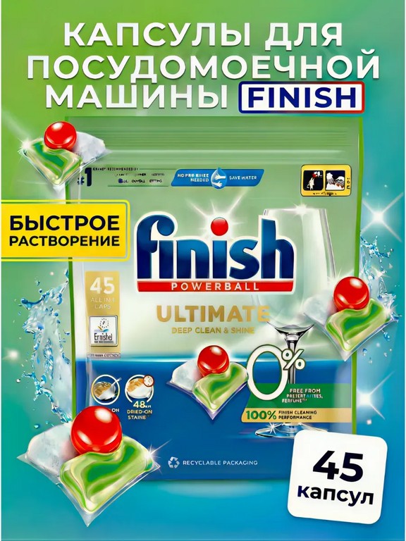 - - Комплектация: Капсулы для посудомоечной машины Finish Ultimate ЭКО 45 шт