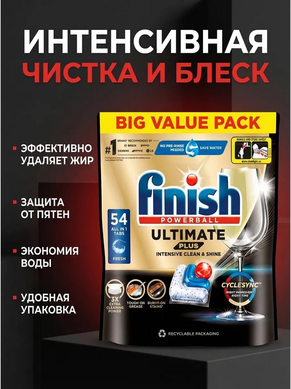 - - Комплектация: Капсулы для посудомоечной машины Finish Ultimate Plus 54 шт